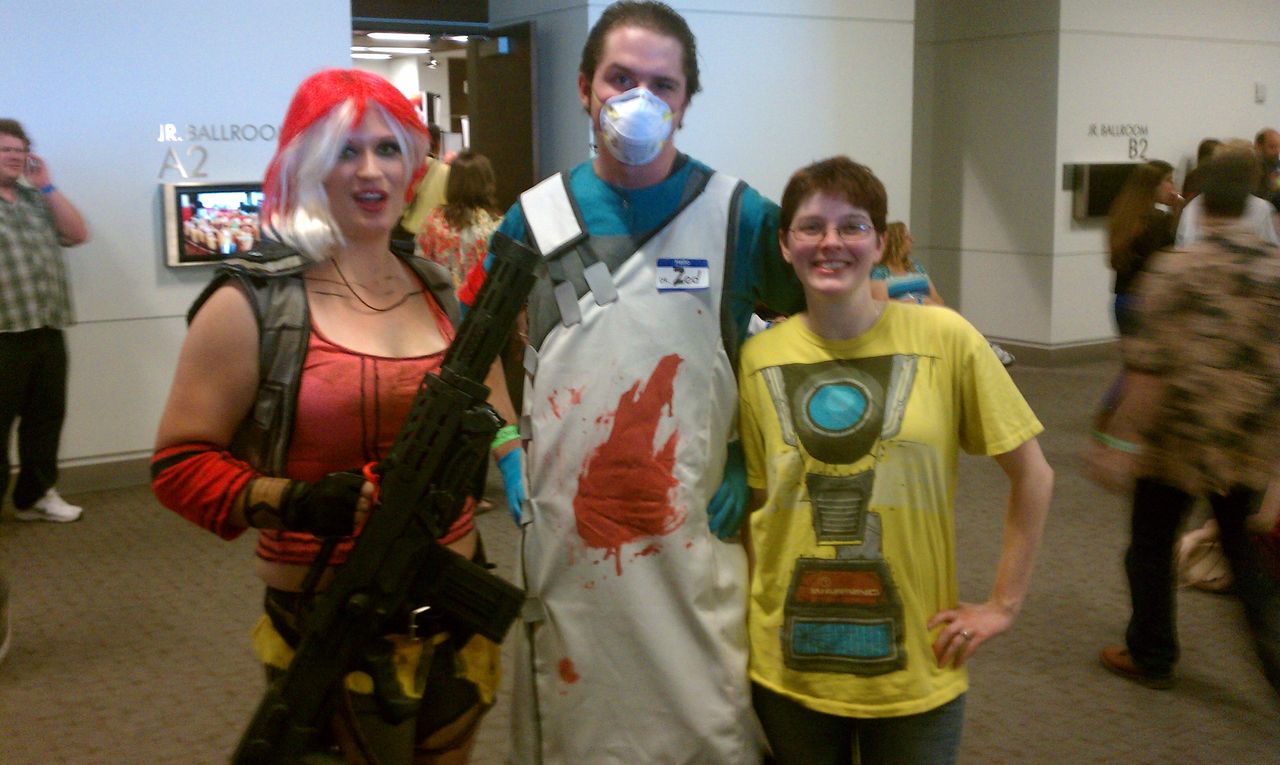 Thoughts on this costume: This has been the most intensive (mostly) solo project I have undertaken to date. I love all the new techniques I had to learn to create this costume and look forward to honing those skills. There’s still a few things I want to go back and fix before I wear it again, but overall, I’m pretty pleased with the results. For the most part, it’s very comfortable. At the Dallas Comic Con, a random guy donated his gun for photos, which was cool. I also ran into an amazing Mad Moxxi, cosplayed by the lovely Enasni Volz as well as a Dr. Zed and Claptrap. Loads of fun.
