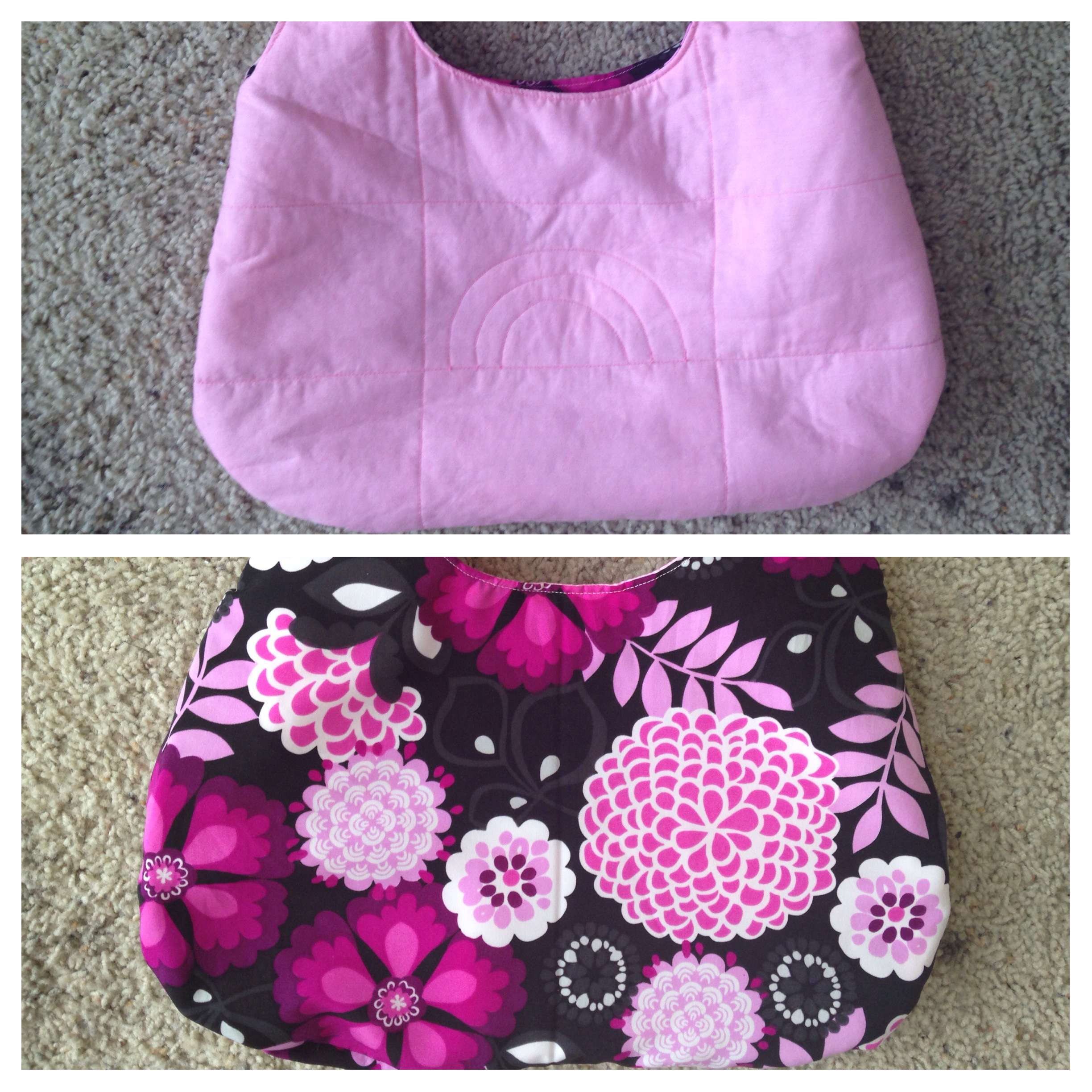 The bag is based off of Very Purple Person’s reversible handbag tutorial. I used a pink cotton base and fusible fleece to give the bag more of a puff. From there, I sketched out the lines from the game as well as the Pokeball emblem in the center and topstitched everything down. The lining/reversible side is from a failed blouse project, but the colors work well together. The fleece made it a bit difficult to reverse the bag in the end, so if you go with this tutorial/pattern, definitely make the straps wider.