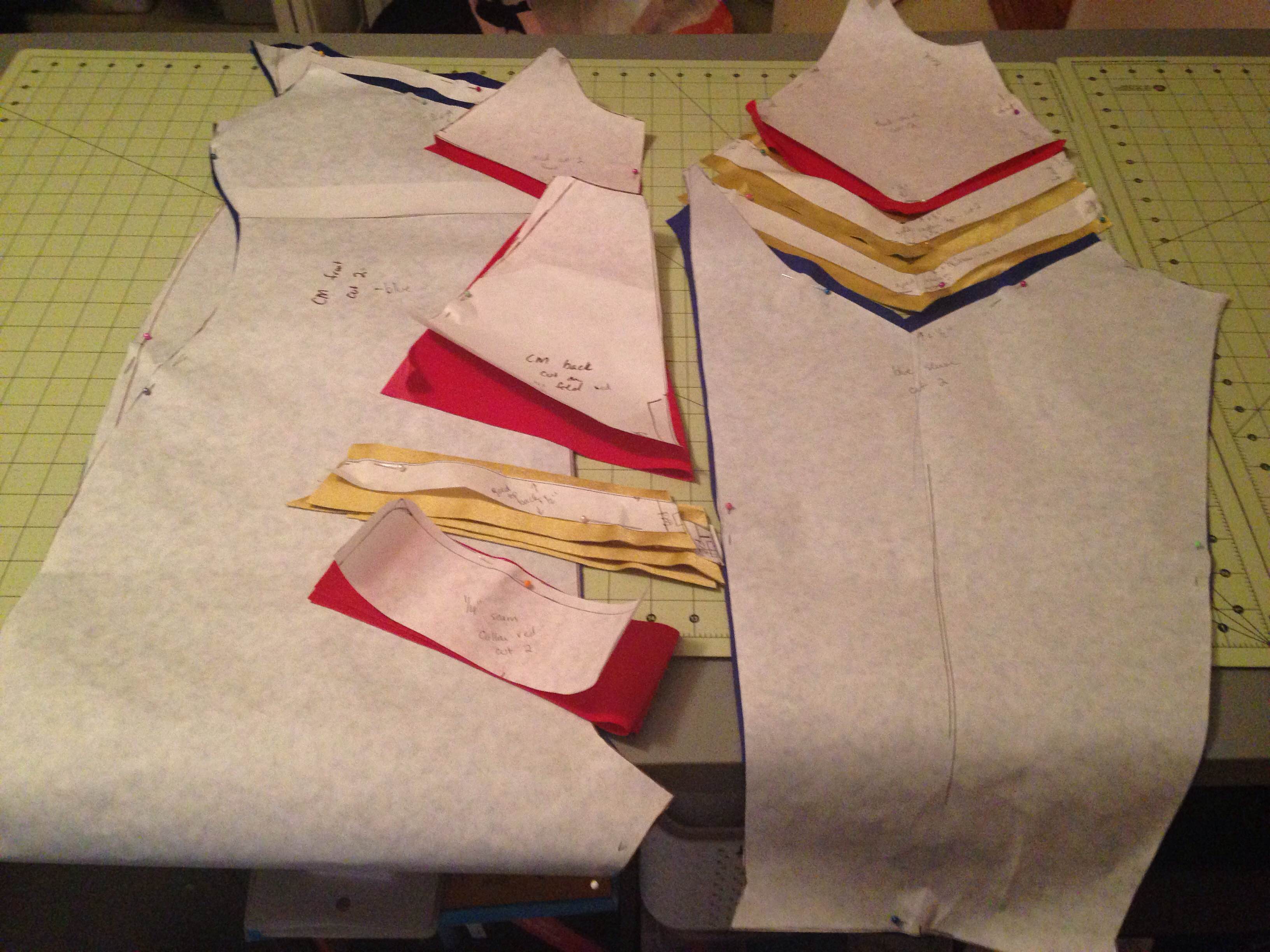 To add my princess seams, I tried on one of my old muslins and figured out where my bust apex (i.e., the fullest part of your bewb) was. From there, I just drew in the curve I wanted. Once that was done, I transferred the line over to my pattern piece and added a seam allowance. And that’s it! I mucked up a little on Batwoman since I didn’t wear the bra I intend to wear while drawing on myself. I haven’t decided yet if I care enough to remake it. Always wear your intended undergarments when drafting, kiddos!