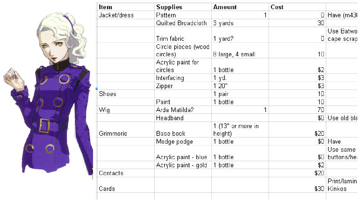 2. Create an itemized budget: In the process of planning out all my costumes at the beginning of the year, I also create an itemized budget. I started doing this when I began offering commissions, but it’s also really helpful for keeping me on track with my own stuff.