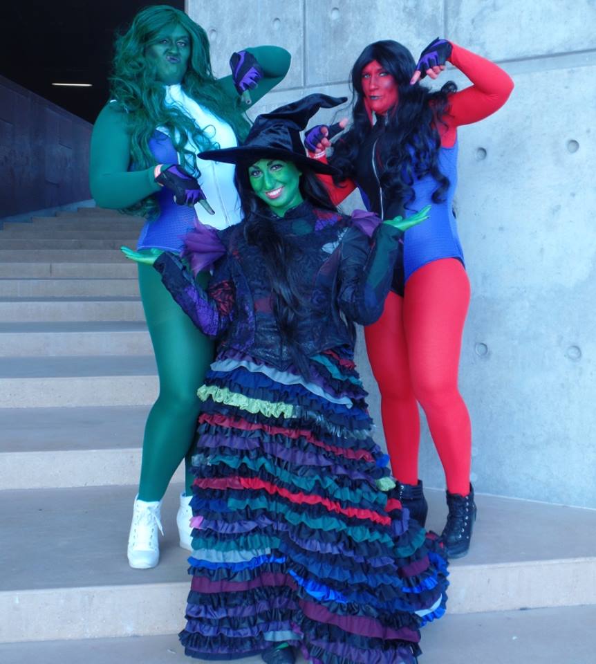 I knew right away that I didn’t want to paint my entire body for this costume (just painting my face and doing makeup took about 2.5 hours), so I turned to We Love Colors for tights that I could use for the arms and legs of these costumes. For regular She-Hulk, I used olive as a base layer, and covered them with a pair of emerald tights I got off of eBay. I plan to swap those out with emerald tights from We Love Colors next time I wear this costume. My mom wore a double layer of scarlet red for the legs and a single layer in the same color for the arms. We both double layered for the legs due to opacity issues. I would highly recommend ordering a smaller size for your arms!