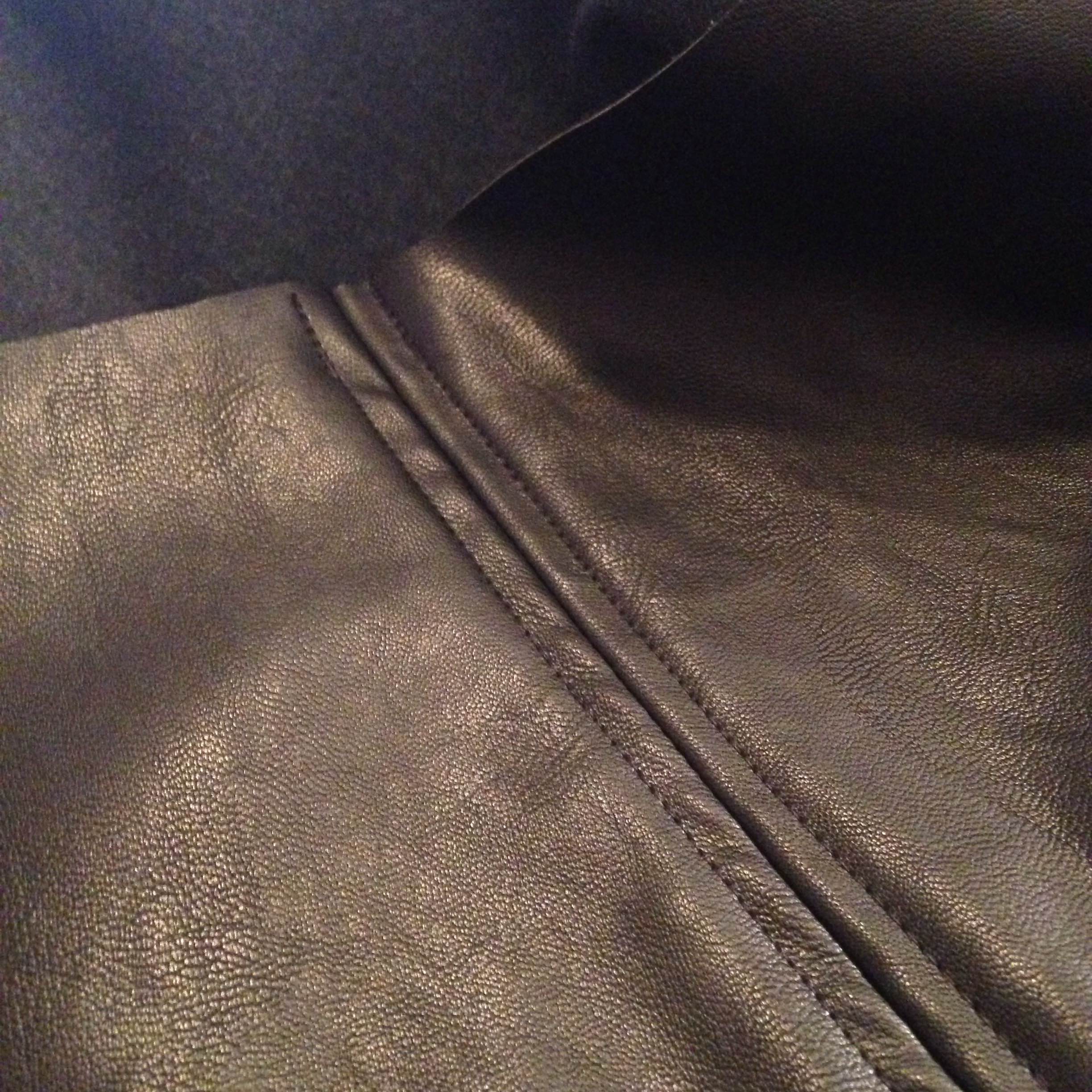 For both the sleeves and skirt, I opted to finish off the seams with a bound bias finish. Leather and pleather don’t *technically* need a finish since they won’t unravel, but since this is a competition piece, I wanted to have a nice, clean interior for craftsmanship judging. I topstitched the remaining seam allowances down to match the game art.