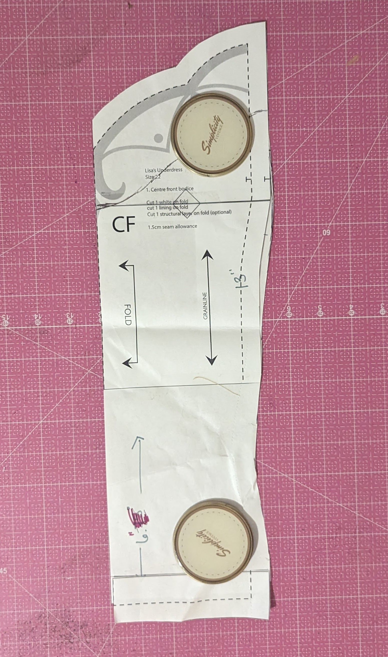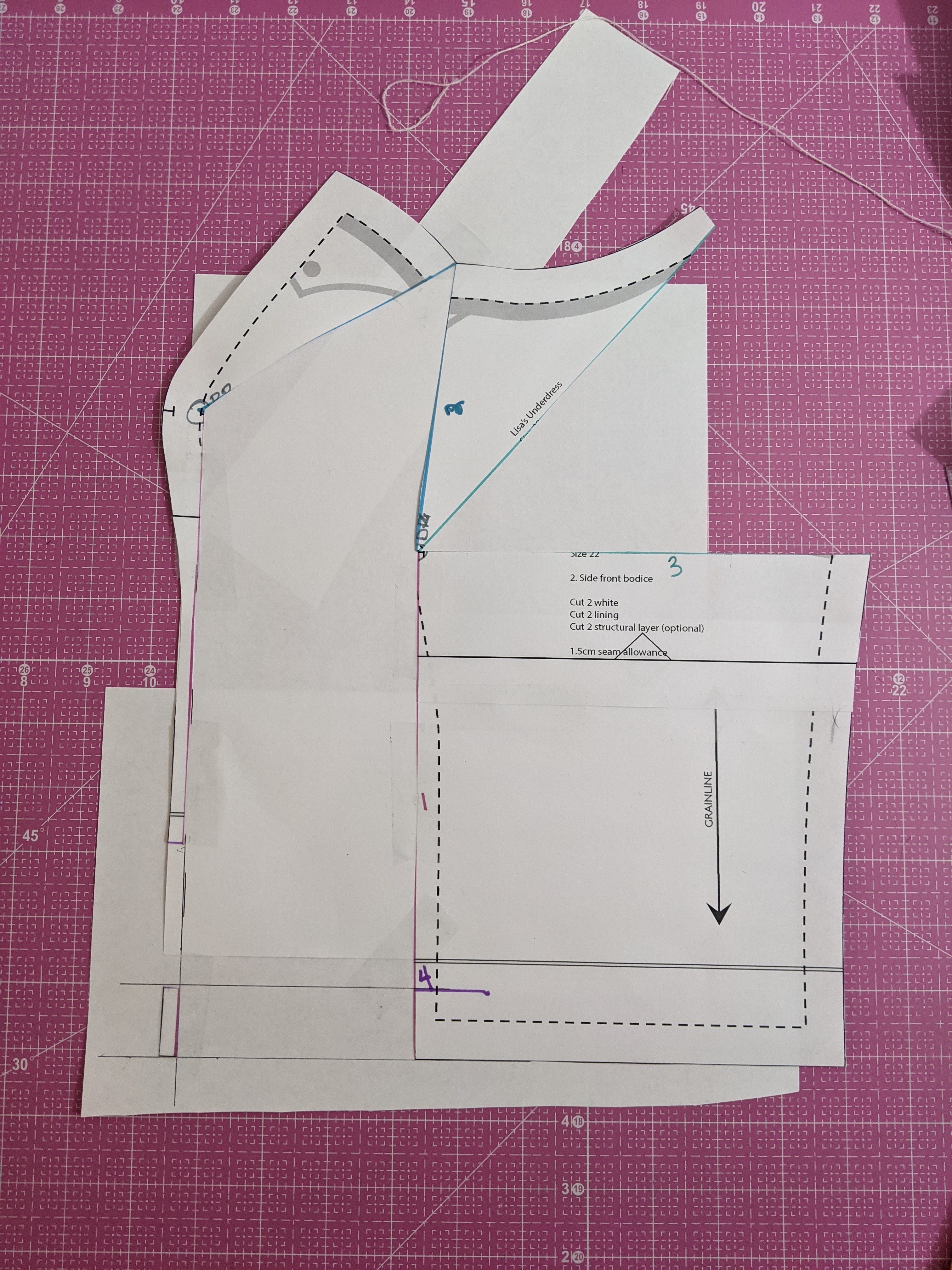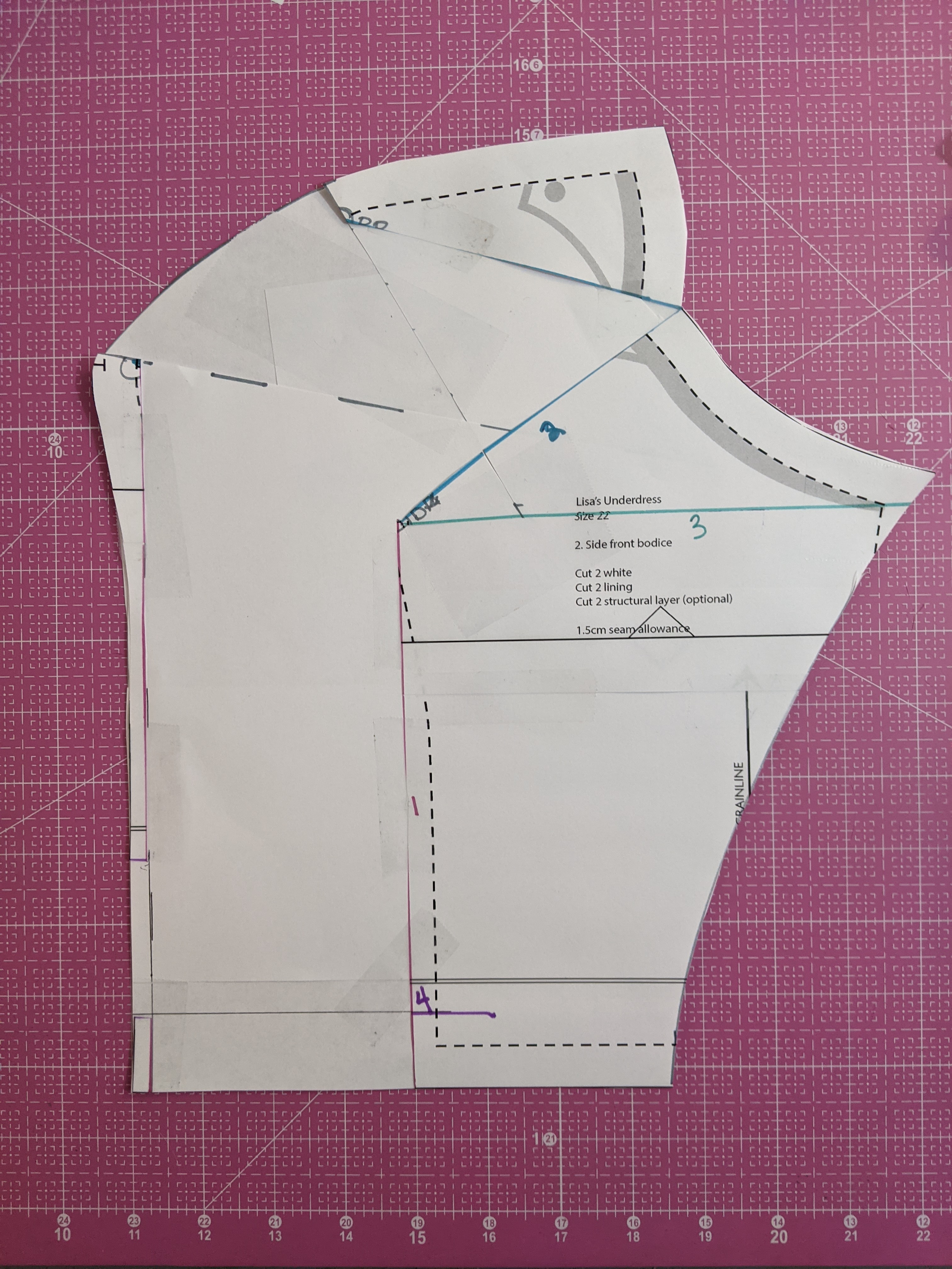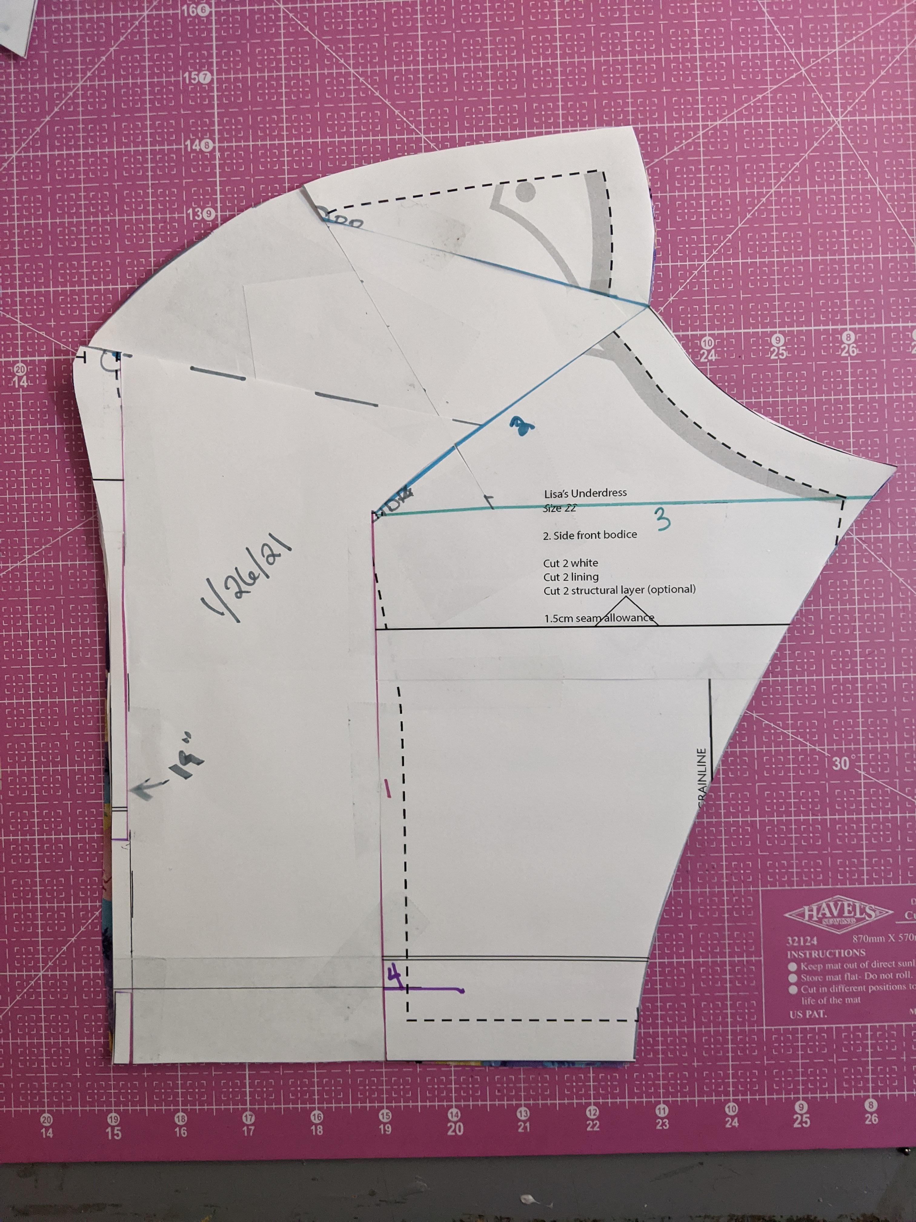 Note that this pattern piece also includes some alterations on the side front seam from my mock-up notes.