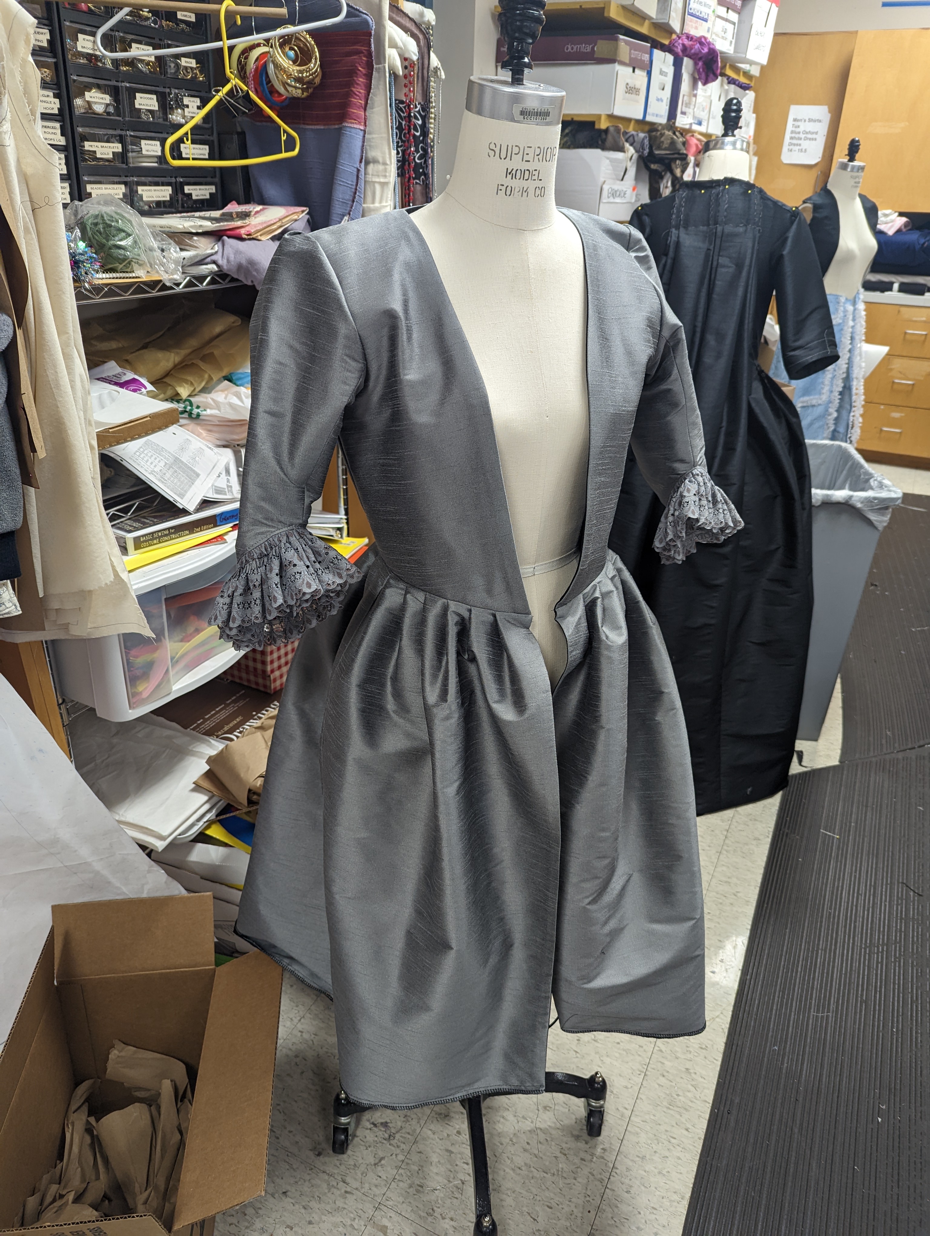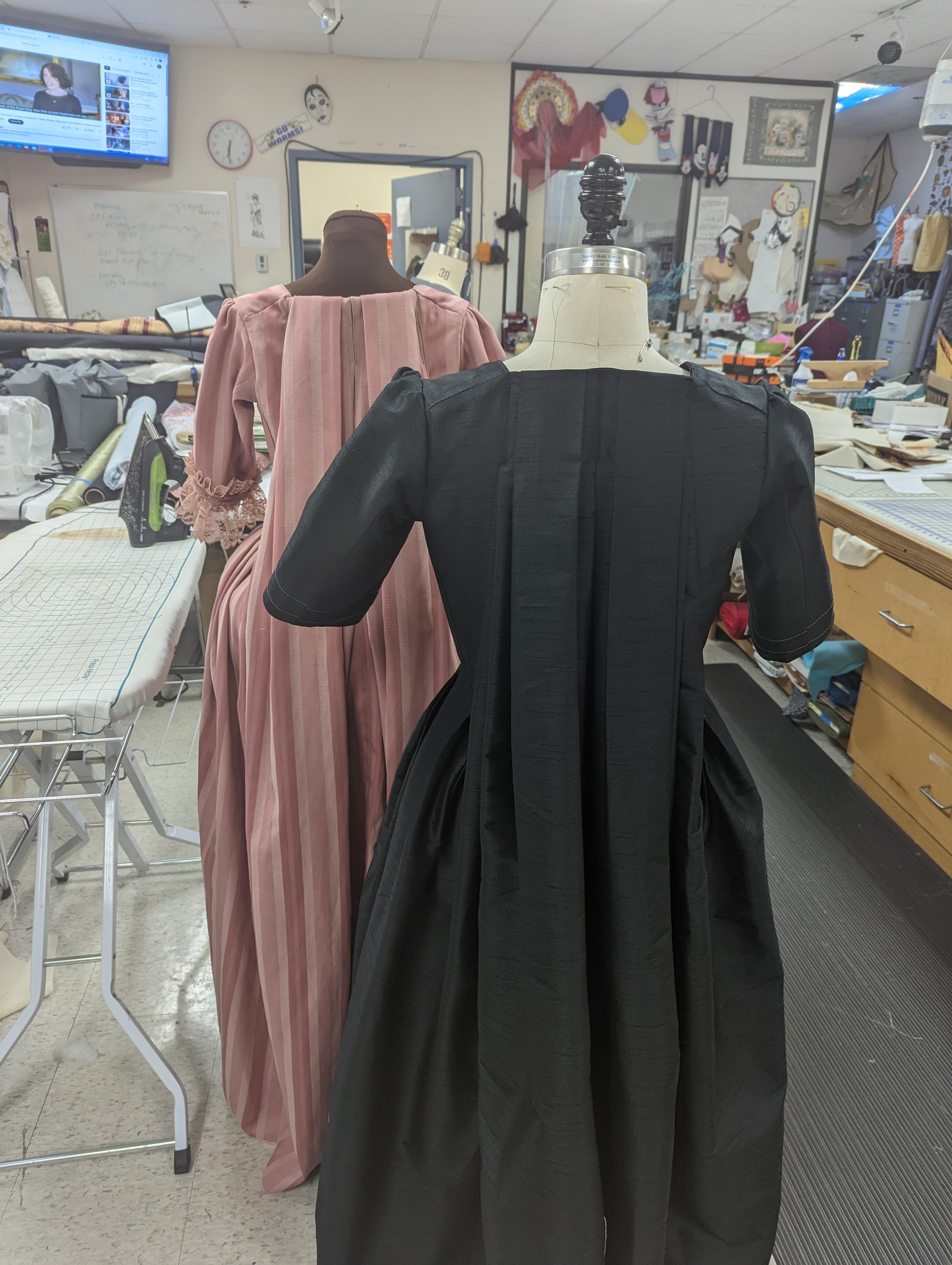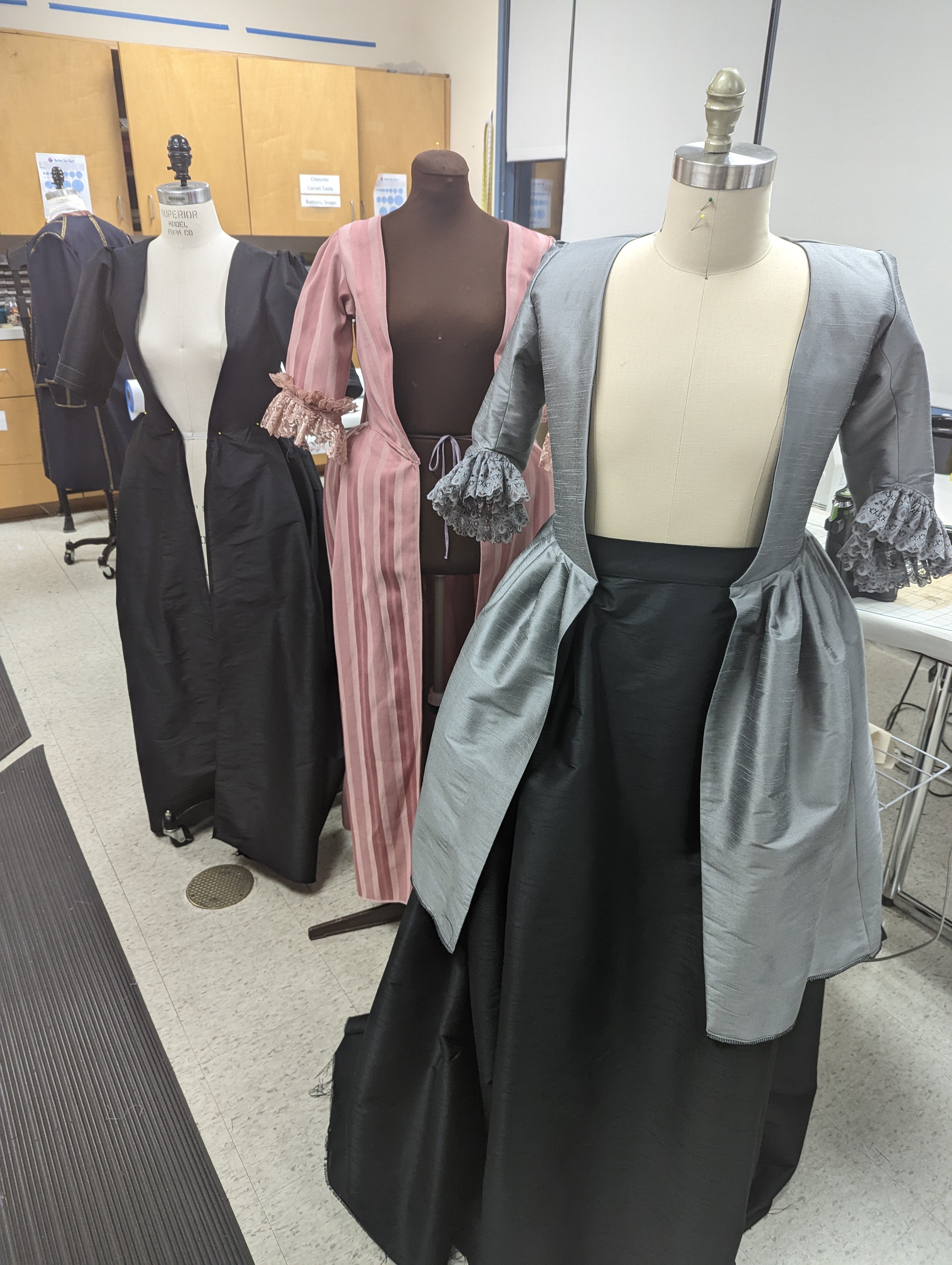 I mostly focused on the women’s costumes for this play and made the majority of the outfits for Flipote (grey and black ensemble), Madame Pernelle (black dress), Mariane (pink dress), and Dorine (blue dress). I also assisted with some of the men’s outfits as well.