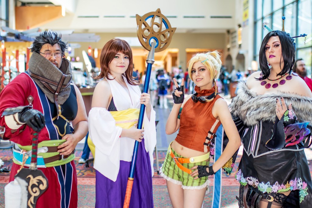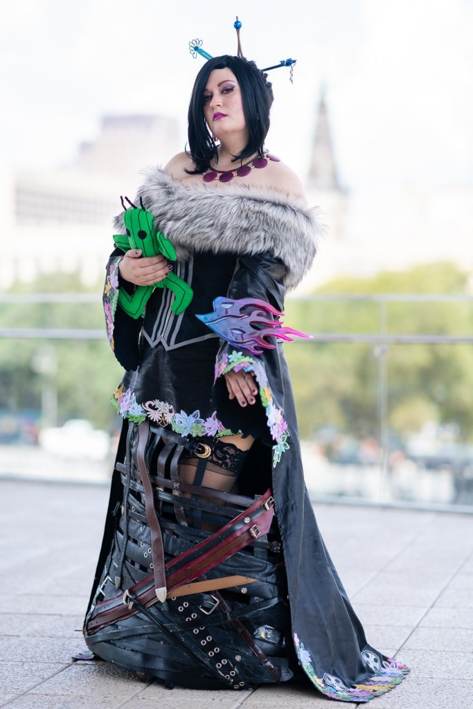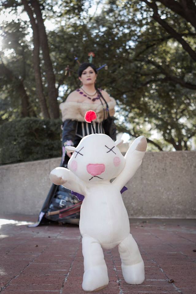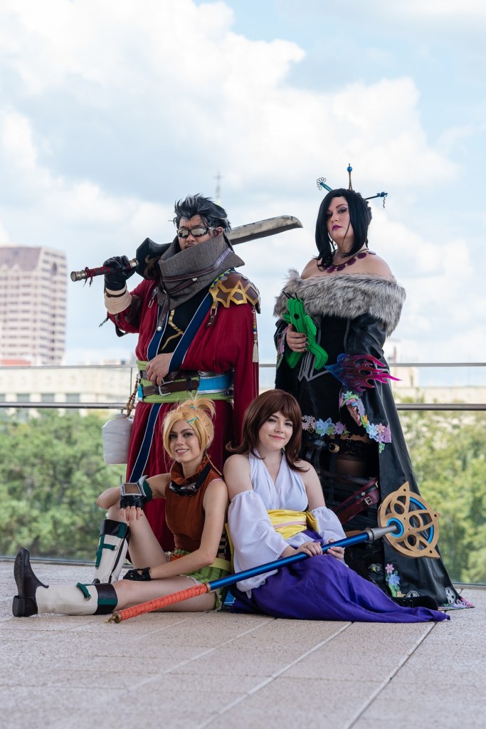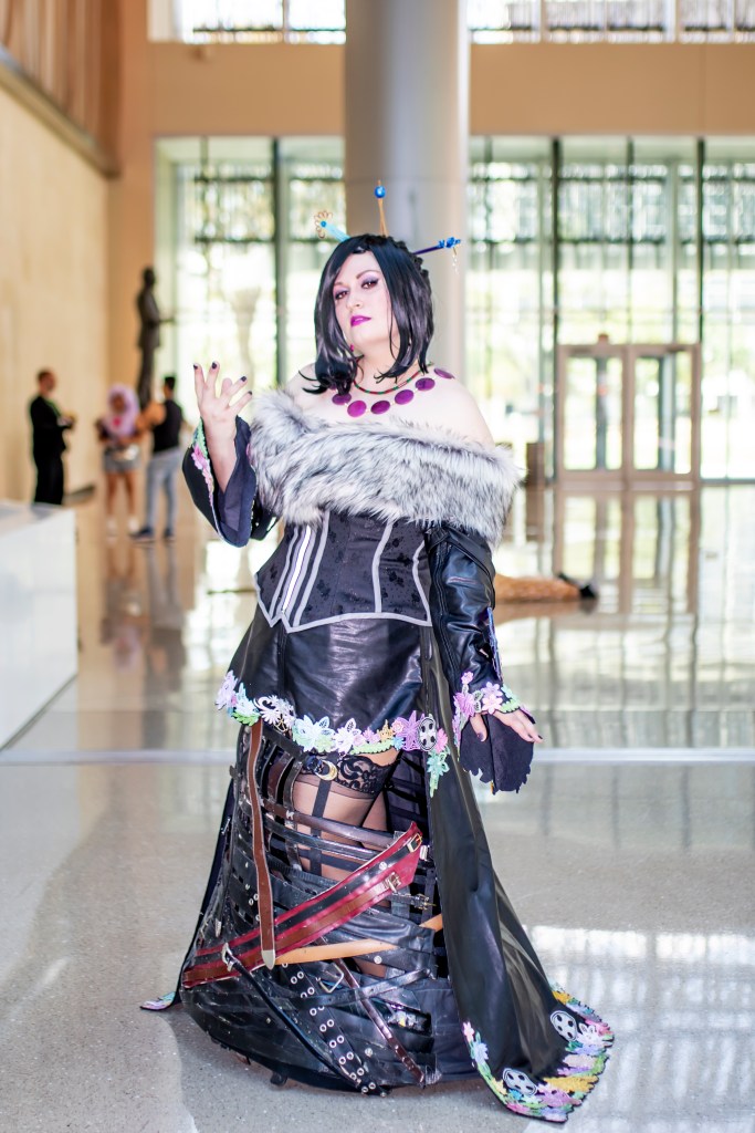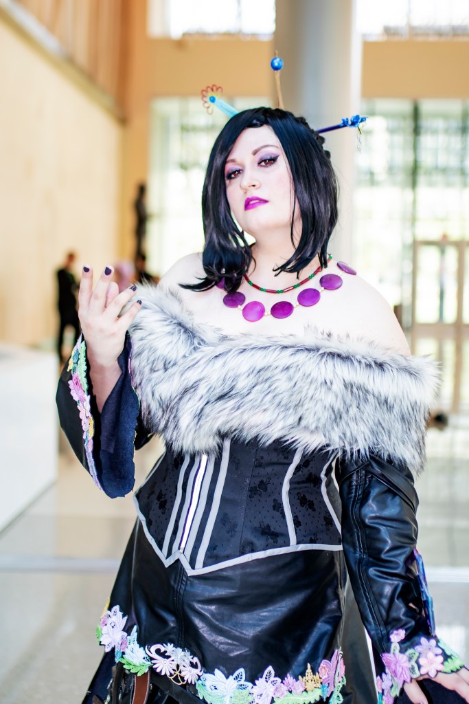 My blog posts (listed below) detail my initial construction in 2015. In 2016, I updated several pieces and competed at A-Kon’s Hallway Costume Contest, where I took home Best Intermediate. In 2019, I updated several pieces again (the corset, wig, and stole were completely remade) as part of a FFX group at San Japan with some of my Cosmic Coterie teammates and our friend Mechaboy07, who made my new hair sticks and bangle.