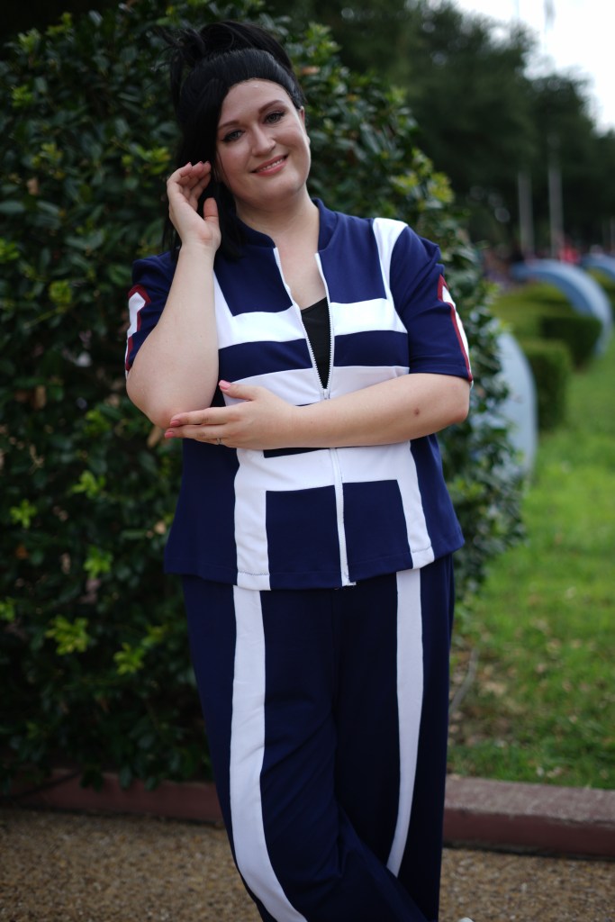 The nice thing about having a uniform costume is that it’s easy to switch up characters, which is what I often do with this build! I have an Ochako wig from The Five Wits for days when I need an easy, comfortable wig, and I have a wig for Momo (styled by Victoria Bane) for days when I want to wear my best girl!