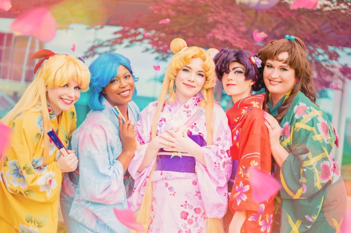 Our first priority in making these was ensuring that we were respectful to Japanese culture in the creation of these builds, so we spent a lot of time and energy making sure we were accurate to artbook designs of the inner senshi and following appropriate yukata-wearing protocol. The incredible Victoria Bane spearheaded this research. You can find our full notes here!