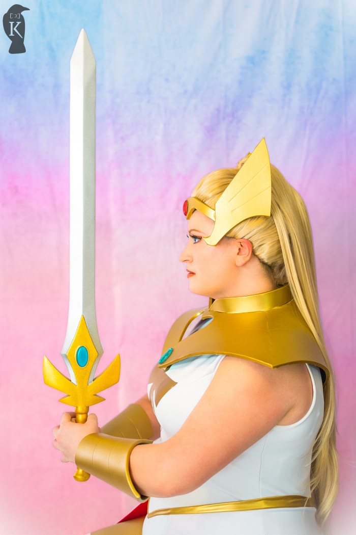 The armor is a modified version of Sayakat Cosplay’s S5 She-Ra armor patterns. All pieces are EVA foam covered in vinyl. Gems are resin and glued to the top of the foam (some were cast by me and some were from seconds purchased from The Dangerous Ladies). The sword is a 3d printed kit from The Dangerous Ladies, finished by me!
