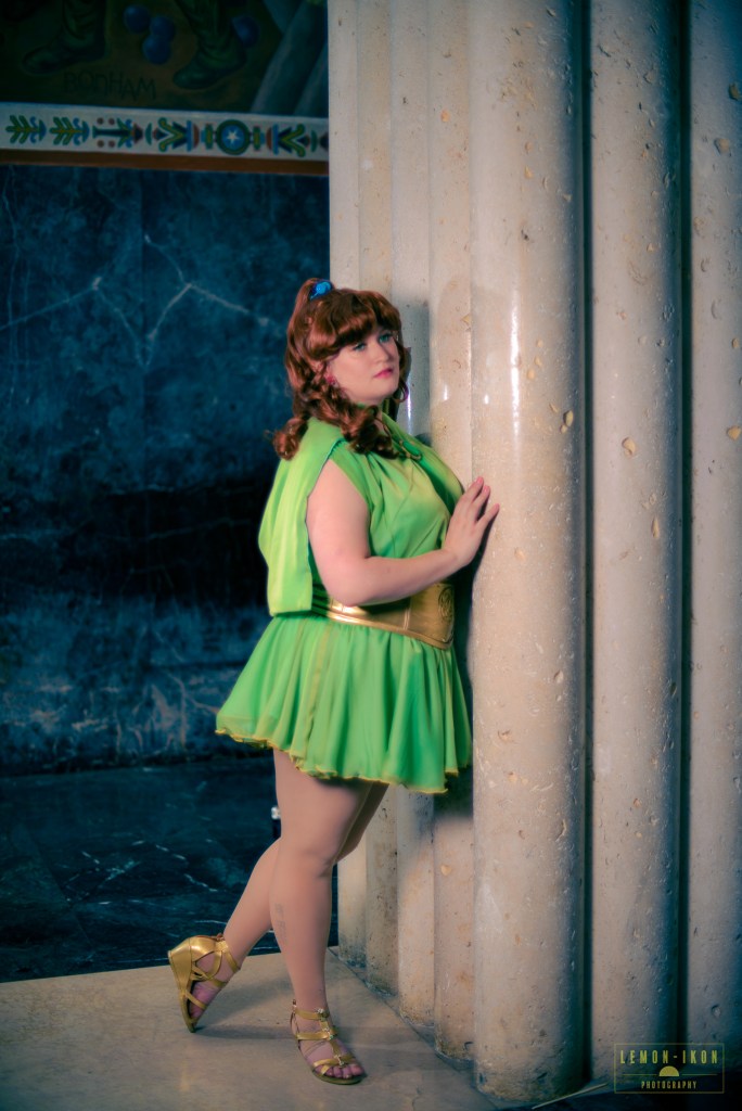 This is a pretty straight forward build! The blouse is constructed much like a chiton with gathered sleeves and a hole cut out for the neckline. The waist is elasticized and the skirts are full circle skirts with rolled hems. We used gold thread for an extra pop of color!