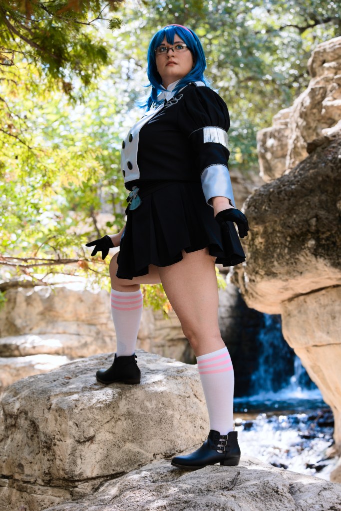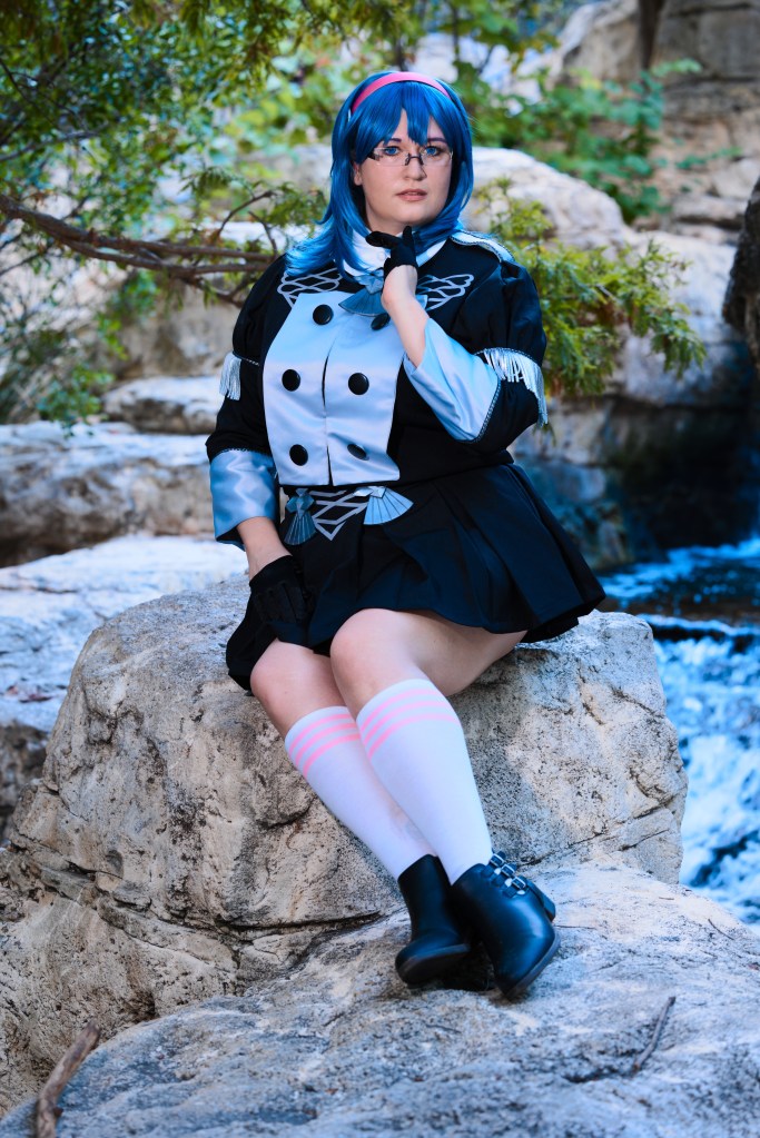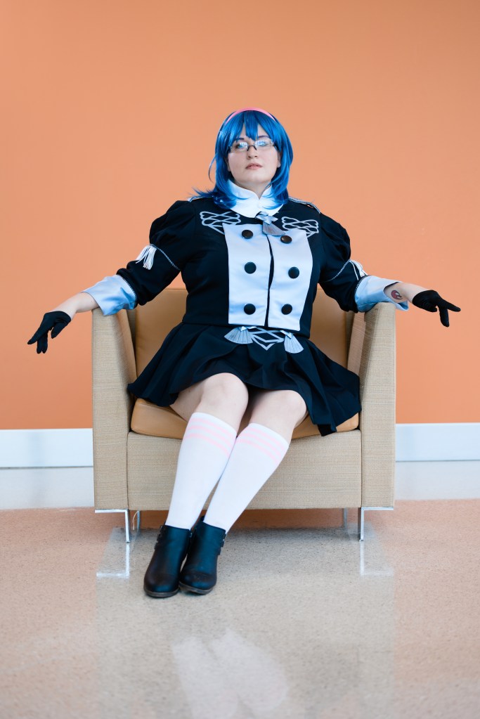I adore female Byleth in the student uniform! The pleated skirt, the cape, her headband, and her glasses are all too cute. Plus, I’ve wanted to cosplay Byleth for some time, and this outfit seemed like a good starting point.